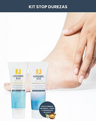 Lensabel K30: tratamiento intensivo con alta concentración de urea. Aplicar tras la ducha, sobre la piel limpia y seca, directamente en las zonas con durezas o callosidades.